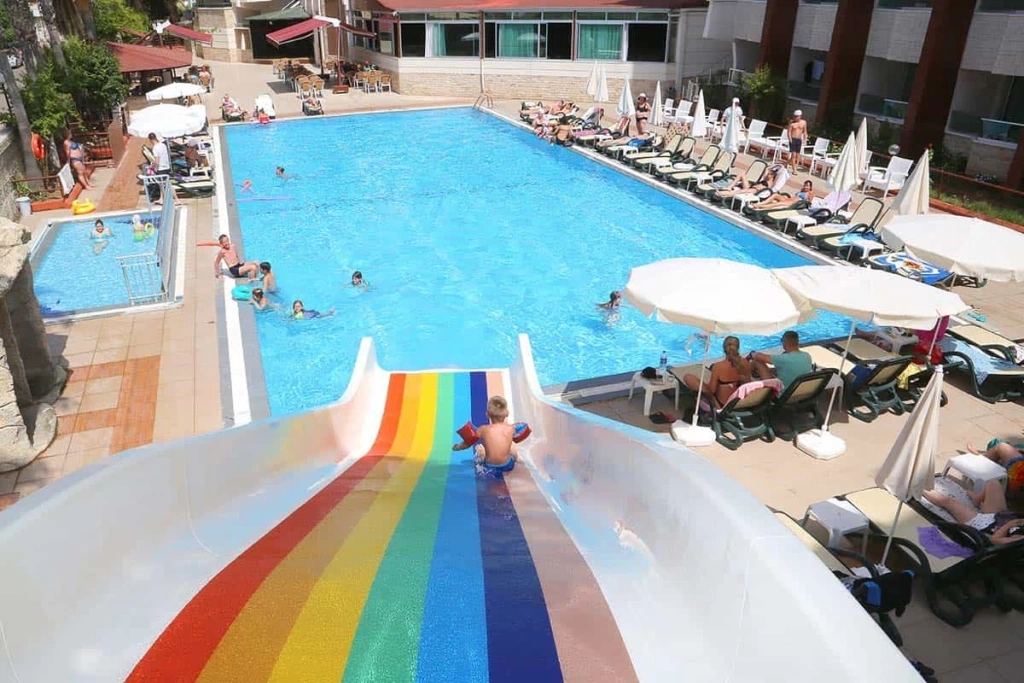 1 водна гірка для дорослих без підігріву, працює 10:00-18:00.