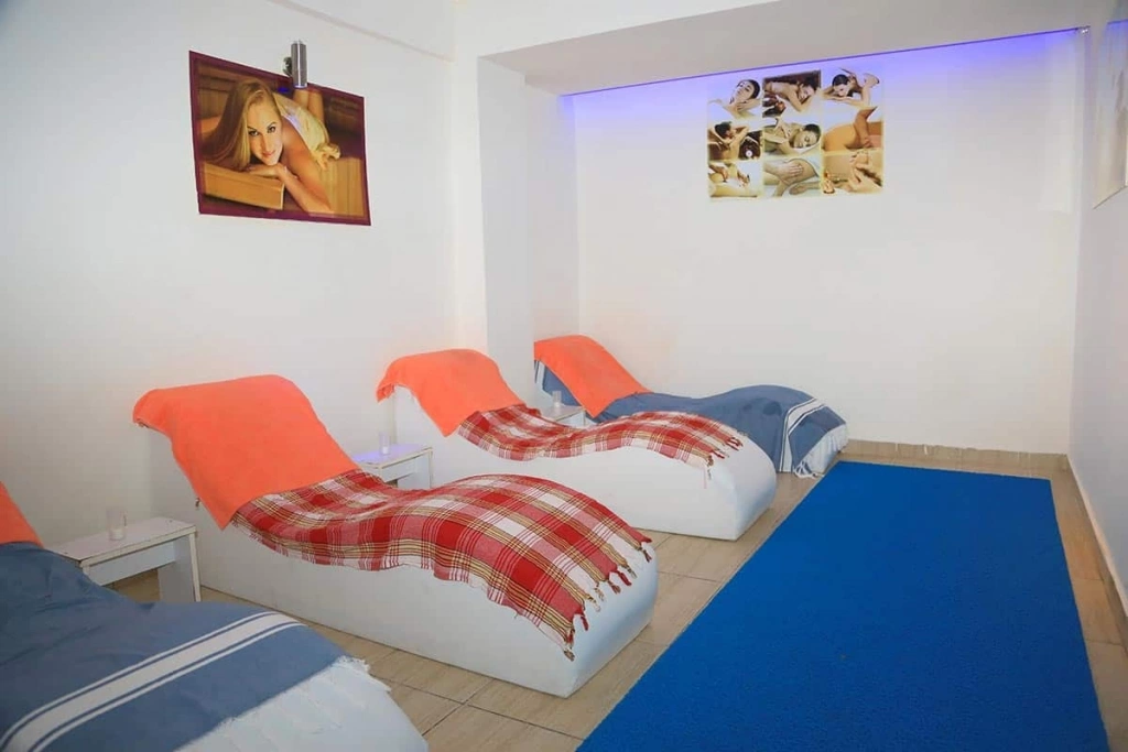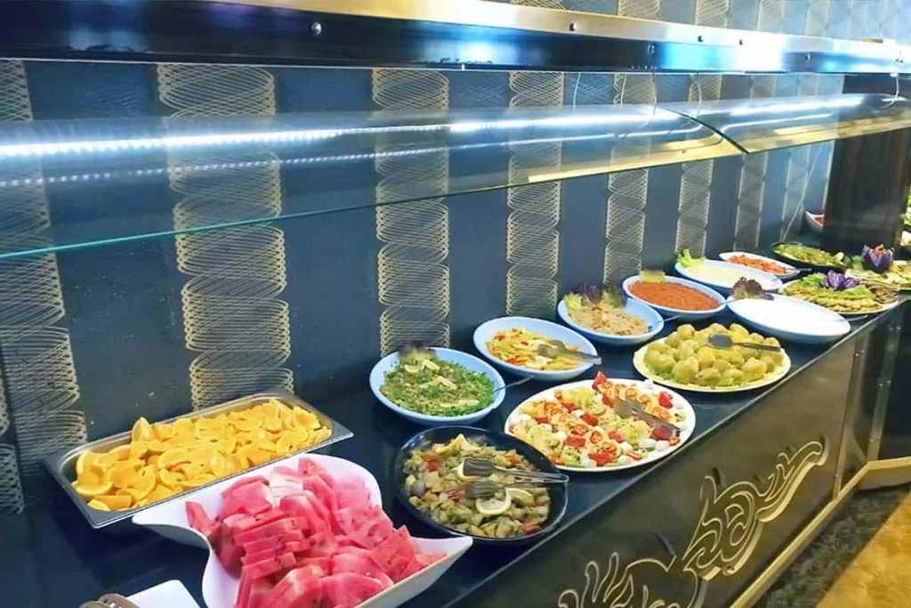 Сніданок з 08:00-10:00, обід з 12:30-14:00, чай/випічка (в барі біля басейну) 16:00-17:00, вечеря з 19:00-21:00. Шведський стіл. Бар біля басейну 10:00-12:30/14:00-18:00/19:00-23:00. Бар в ресторані 12:30-14:00/19:00-21:00. Бар на пляжі 10:00-18:00. 1 відкритий басейн без підігріву, площа 250 кв. м. 1 критий басейн з прісною водою, без підігрі
