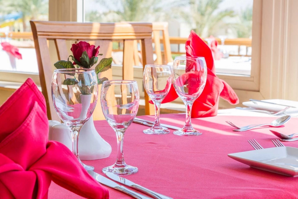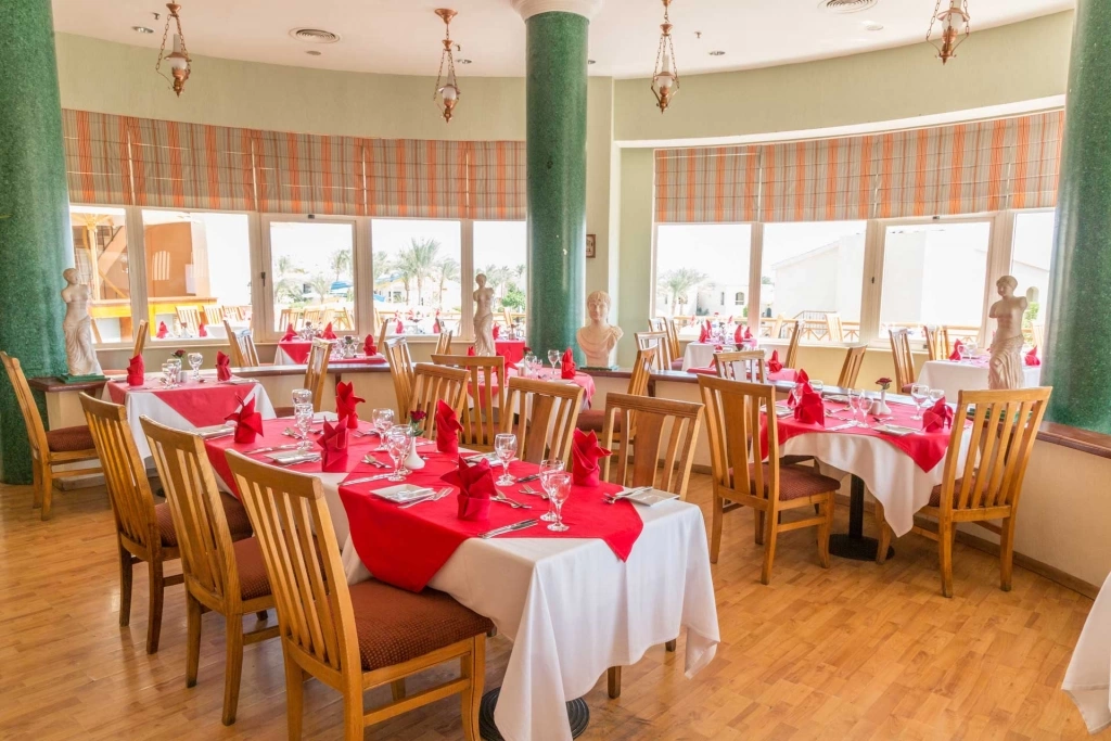Ресторани: Головний ресторан White Knight. Ресторани Аля Карт (Східний ресторан на пляжі Fatima, Італійський ресторан La Trattoria і рибний ресторан Barracuda): вечеря за попередньої резервації (одне безкоштовне відвідування за весь період відпочинку). Бари: Вікторія Паб (з 10:00 до 00:00). Бар біля басейну (з 10:00 до 17:00). Бар на пляжі (з 10: