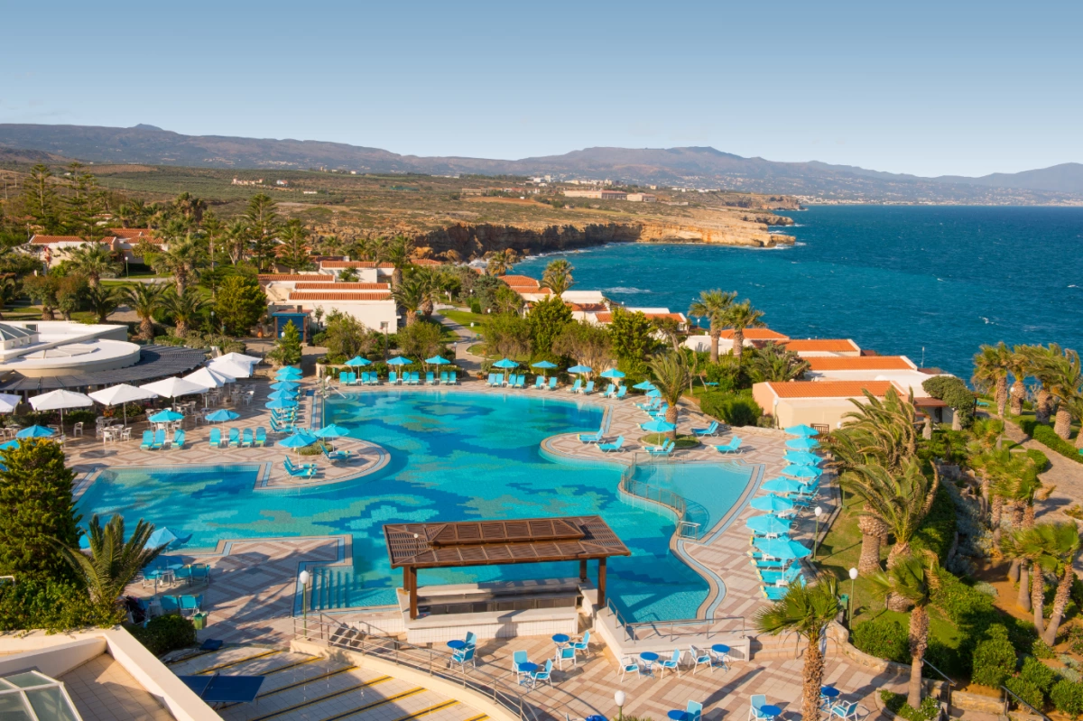 Елегантний готель на березі Егейського моря. З номерів відкривається прекрасний вид на 2 приватні бухти. Є морський причал. Складається з двох корпусів Creta Panorama і Creta Mare. Широкий вибір розваг, комфортні номери, спорт, басейни і сервіс найвищого класу. Ідеальне місце для розслабляючого відпочинку. Належить до мережі готелів Iberostar Hotels & Resorts.