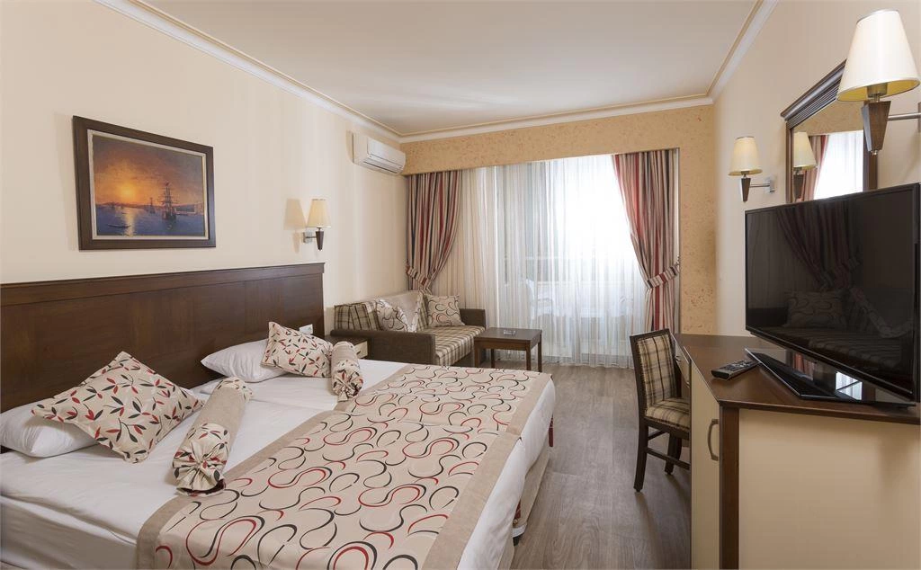 В номерах представлено: индивидуальный кондиционер, мини-бар (бесплатно только вода - пополняется ежедневно), спутниковое ТВ с российским каналом, прямой телефон, ванна/душ, фен, сейф (платно), балкон, софа/диван-кровать, доп кровать по запросу.