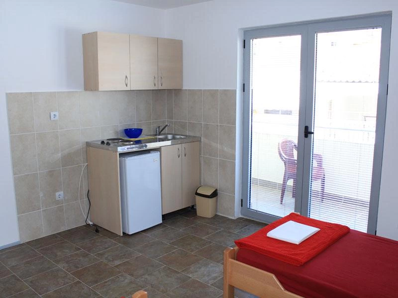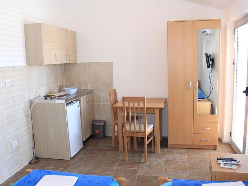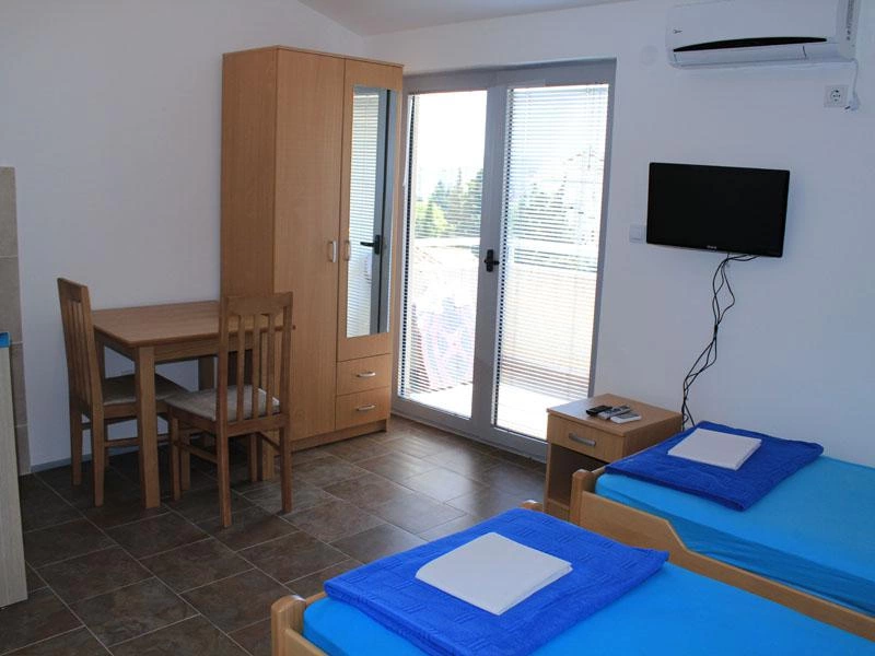 В 350 м від піщано-галькового пляжу Словенска Плажа, в 300м від дрібно-галькового пляжу Могрен (вхід на пляж – платно).