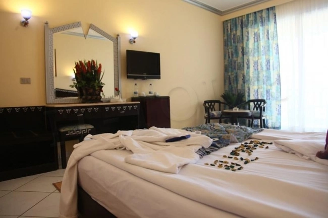Ресторани: Основний ресторан Cleopatra – шведський стіл (сніданок, обід, вечеря). Isis – a la carte ресторан на пляжі. Рибний ресторан Love Boat. Бари: Бар на пляжі Isis (10:00 – 00:00). Кафе Sahara Tent – східні чаї, кальян. Кафе Oasis. Відкритий басейн з підігрівом, магазини, відкрита тераса, камера зберігання багажу, цілодобова стійка реєстрац