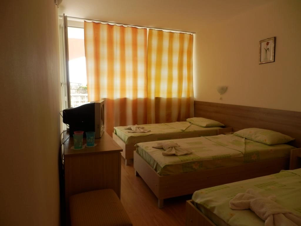 3 основные кровати, тумбочки, шкафы, зеркало, гардероб, TV- SAT, мини бар, вентиляторы, душевая с туалетом, балкон.