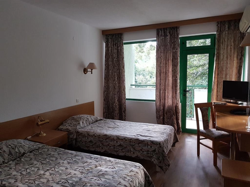 Кондиционер, телевизор, телефон, Wi-Fi (платно), мини-холодильник, ванная комната с душем, фен, балкон, уборка номера ежедневно.