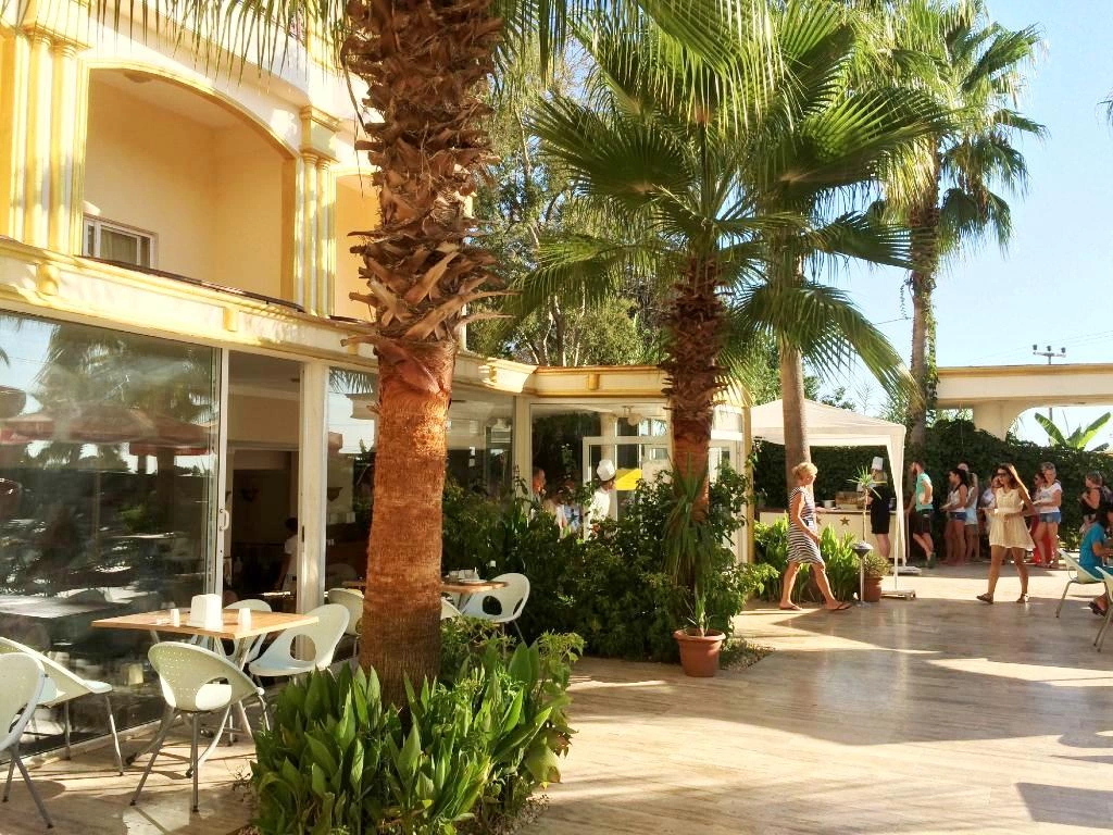 В 750 м від готелю. Протяжність пляжу — 70 м. Вхід в море: пісок і галька.