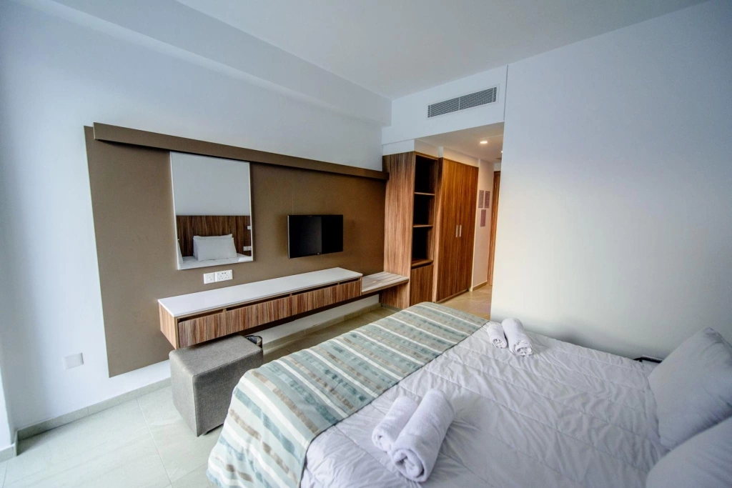 Расположен: в 800 метрах от центра популярного курорта Айя-Напа, в 500 метрах от пляжа. Множество ресторанов, кафе-баров и магазинов расположено в нескольких минутах ходьбы. Аэропорт Ларнака – в 45 км.