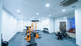 Кондиционер, телефон, балкон, ванна/душ, холодильник (пустой).