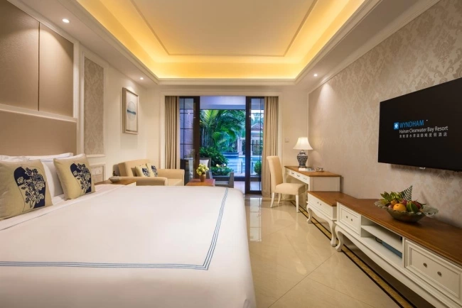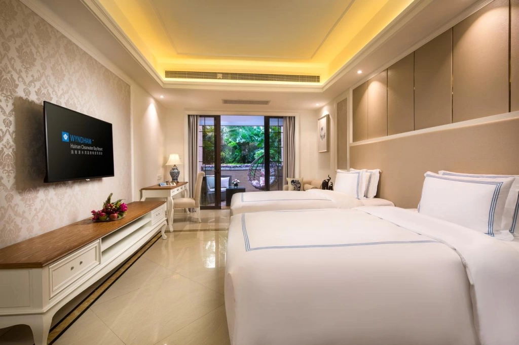 Курортний готель Wyndham Hainan Clearwater Bay розташований в районі Ліншуй в м. Санья, в оточенні ландшафтних садів з елементами Південно-Східного дизайну. У готелі 14 поверхів, побудований в 2016 році. Входить в мережу Wyndham Hotels & Resorts. До послуг гостей відкритий басейн, що працює цілий рік, приналежності для барбекю, ресторани, лаундж, а також безкоштовний Wi-Fi і приватна парковка. За кілька хвилин можна дійти від готелю до пляжів з білим піском. Острів Учжічжоу знаходиться приблизно в 1 годині їзди від готелю. 69,8 км до міжнародного аеропорту Саньї «Фенікс».