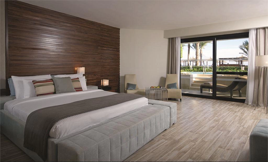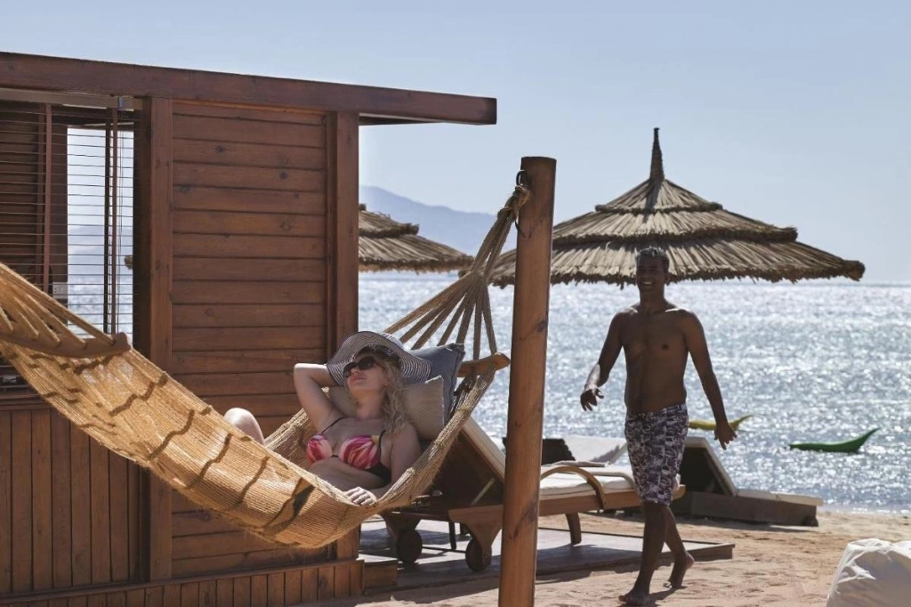Власний піщаний пляж протяжністю 650 метрів, поруч кораловий риф (рекомендується спеціальне взуття), є розчищений вхід для дітей, пластиковий понтон 150 м, пляжний променад для прогулянок і пробіжок, приватна зона на пляжі зі спеціальним обслуговуванням — платно. Пляжні рушники — безкоштовно.