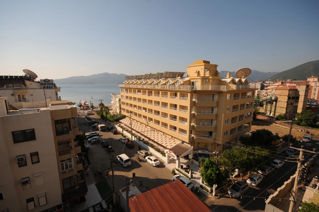 Отель расположен в 1 км от центра Мармариса, в 20 м от пляжа. В 350 метрах от отеля находится торговый центр Blue Port, в 600 метрах — автобусная остановка. Построен в 1994 году, последняя реставрация сделана в 2017 году. Состоит из одного основного 6 этажного здания с лифтом. Отель предназначен только для взрослых гостей.