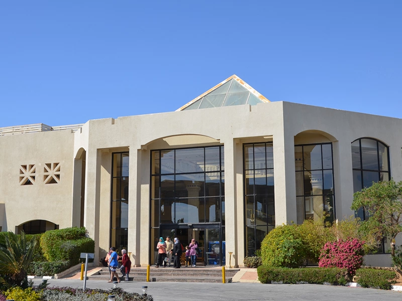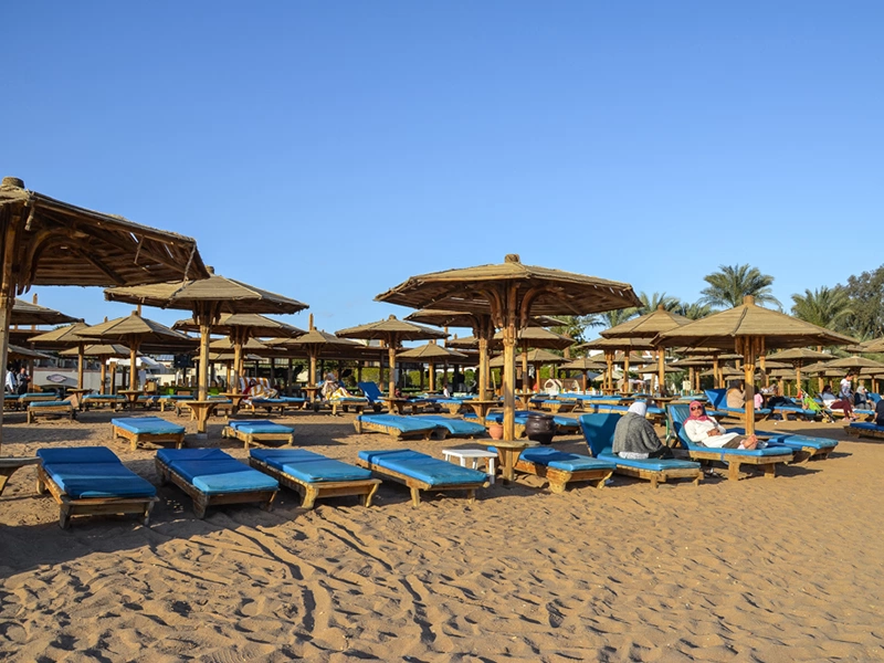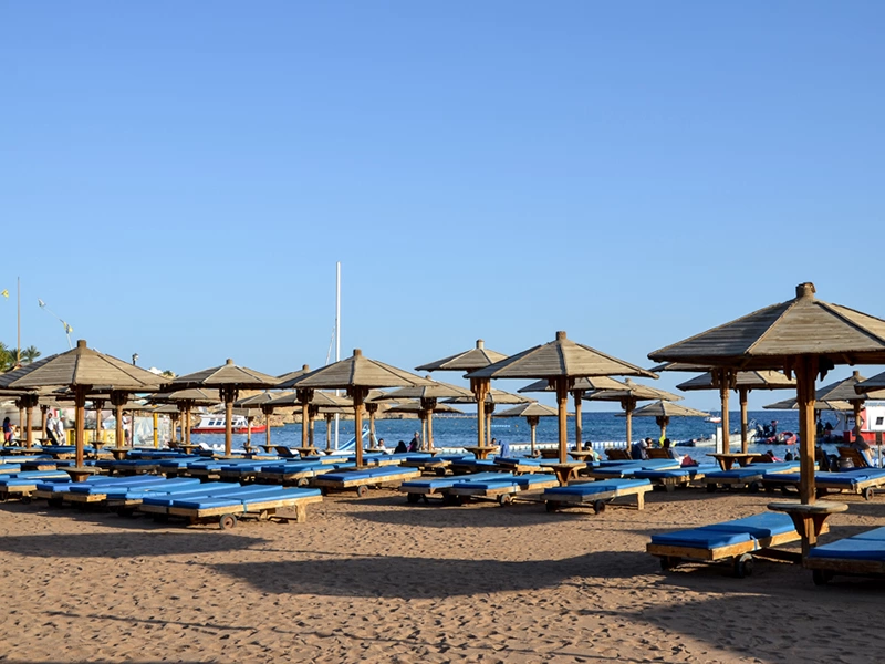 В 12 км от аэропорта, в бухте Naama Bay, на второй линии от моря.