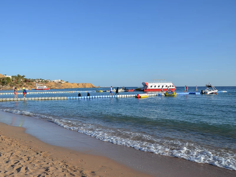 Власний піщаний пляж протяжністю 150 метрів, поруч кораловий риф і зручний вхід в море, також є понтон. Пляж розташований в готелі Mariott Beach Resort (250 метрів від готелю). Пляжні рушники — безкоштовно.