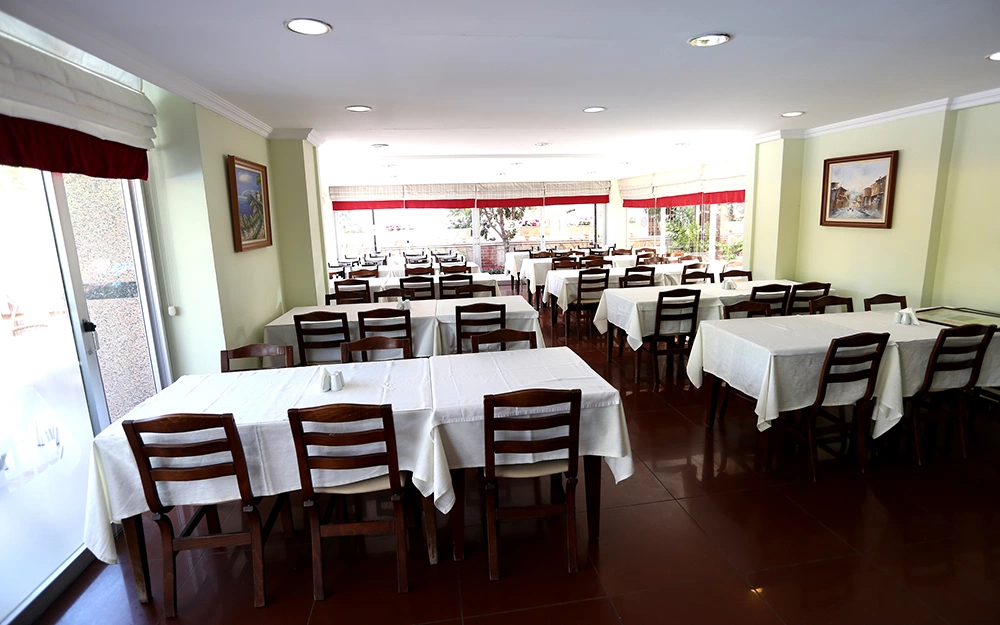 Ресторан - відкрита секція на 150 чоловік і крита секція на 100 осіб. Бар біля басейну, лобі-бар. 1 відкритий басейн з прісною водою, без підігріву. 1 водна гірка. Басейн не працює в зимовий сезон.