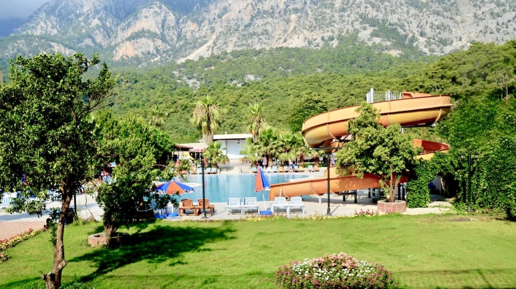 В 35 км от аэропорта г. Анталья, в 12 км от г. Кемер, в п. Бельдиби.