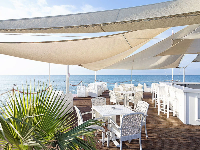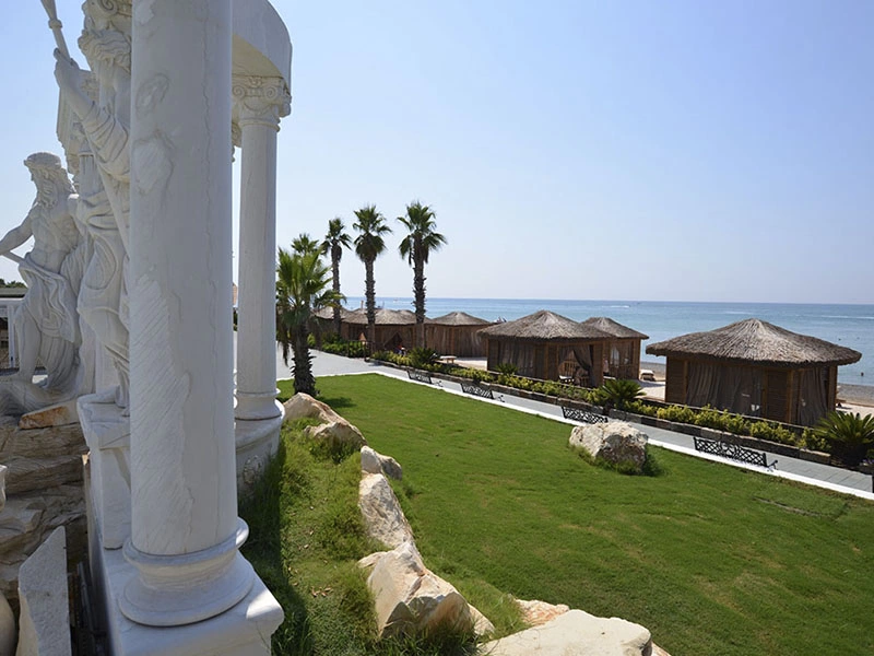 Власний пляж довжиною 300 м, пісок і дрібна галька. Інфраструктура пляжу включає в себе три окремі зони: загальний пляж для гостей готелю; зона +16 і VIP павільйони. Пляж оснащений пірсом, баром на пірсі, Beach snack баром на пляжі, дитячим басейном з морською водою, шезлонгами, навісами, душовими кабінами.