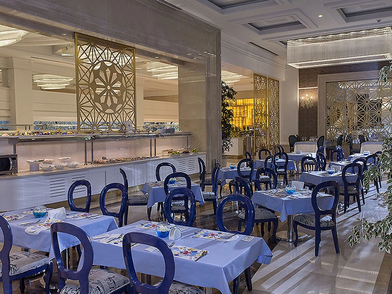 Цілодобова стійка реєстрації гостей, камера зберігання багажу, послуги консьєржа, факс/ксерокопіювання (платно), Wi-Fi безкоштовно (на всій території), туристичне бюро, послуги по прасуванню одягу (платно), room service: цілодобово (платно), 2 основних ресторану (є дієтичне харчування), 6 ресторанів a la carte: італійський, французький, стейк-хаус,