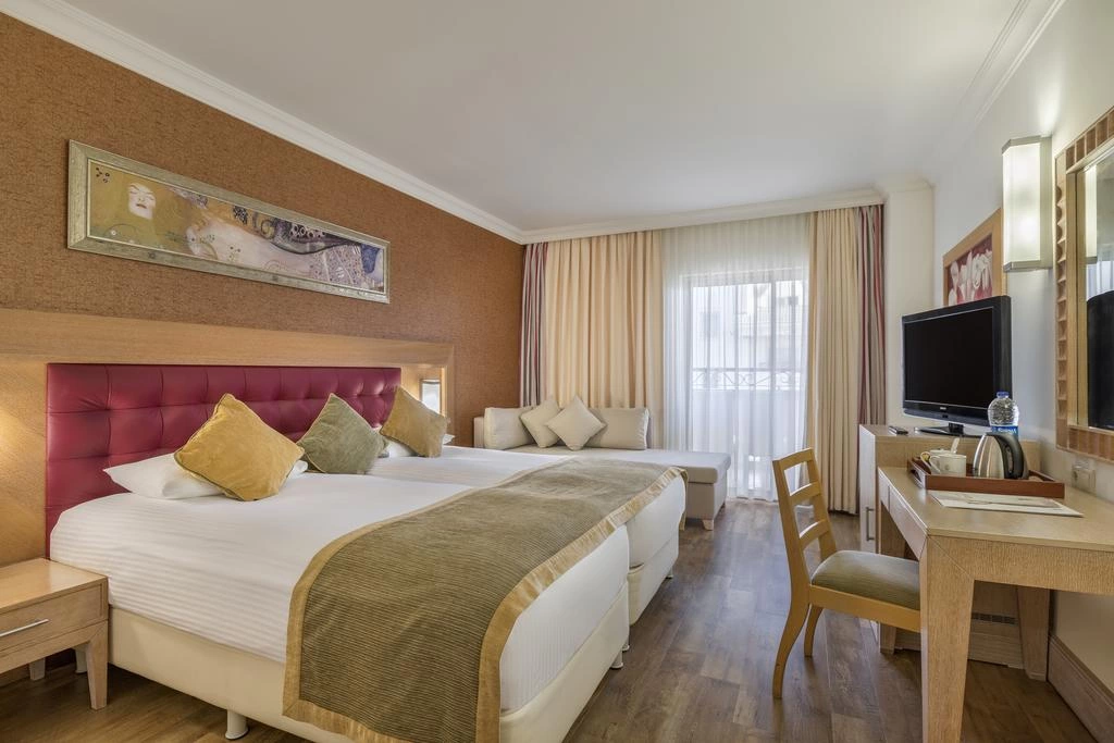 Центральный кондиционер, сейф (бесплатно), LCD-телевизор, спутниковое ТВ, Wi-Fi (бесплатно), телефон (платно), мини-бар бесплатно (прохладительные напитки, пиво — ежедневно), электрический чайник, набор для приготовления чая/кофе, ванная комната, фен (бесплатно), туалетные принадлежности, балкон/терраса/французский балкон. Уборка номера: ежедневно, смена белья: 3 раза в неделю, room service: круглосуточно (платно).