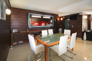 Кондиционер, телевизор, холодильник, рабочий стол, ванная, душ, банные принадлежности, чайник.