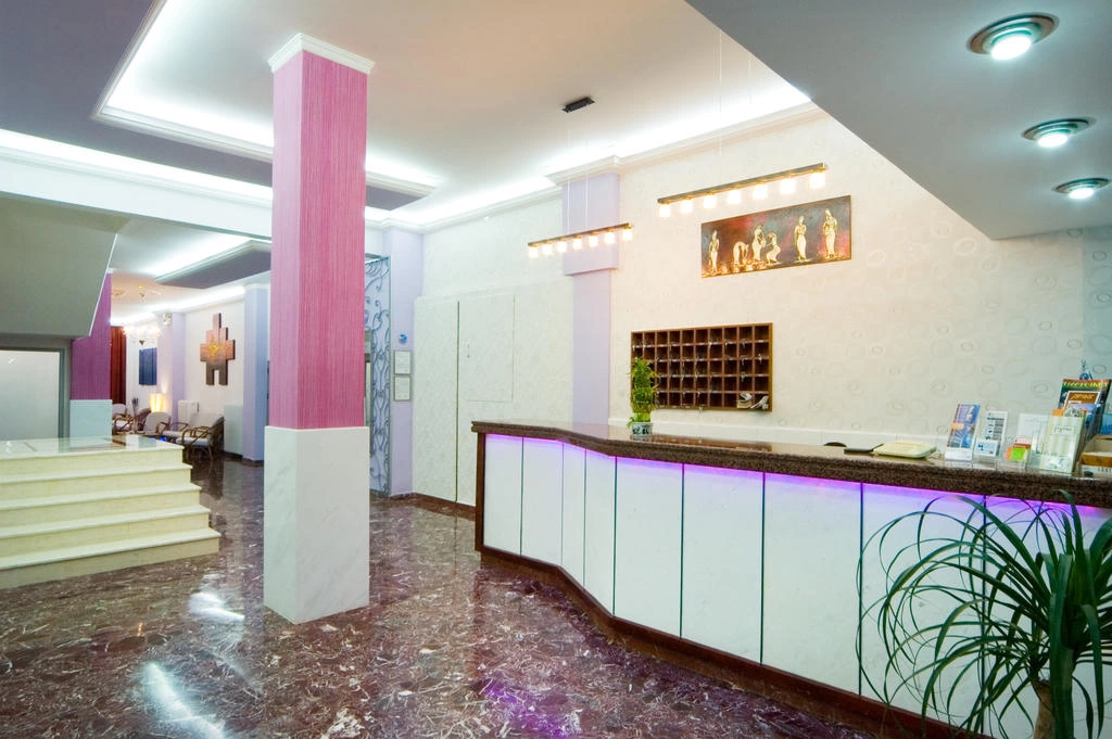 Небольшой семейный отель, расположенный в самом центре г. Лутраки, рядом с множеством магазинов, ресторанов и баров. Простота стиля и хороший сервис, уютные номера и доброжелательная атмосфера. Привлекает как идеальное место для спокойного отдыха. Год строительства отеля: 1967 год. Последняя реставрация: 2011-12 годах.