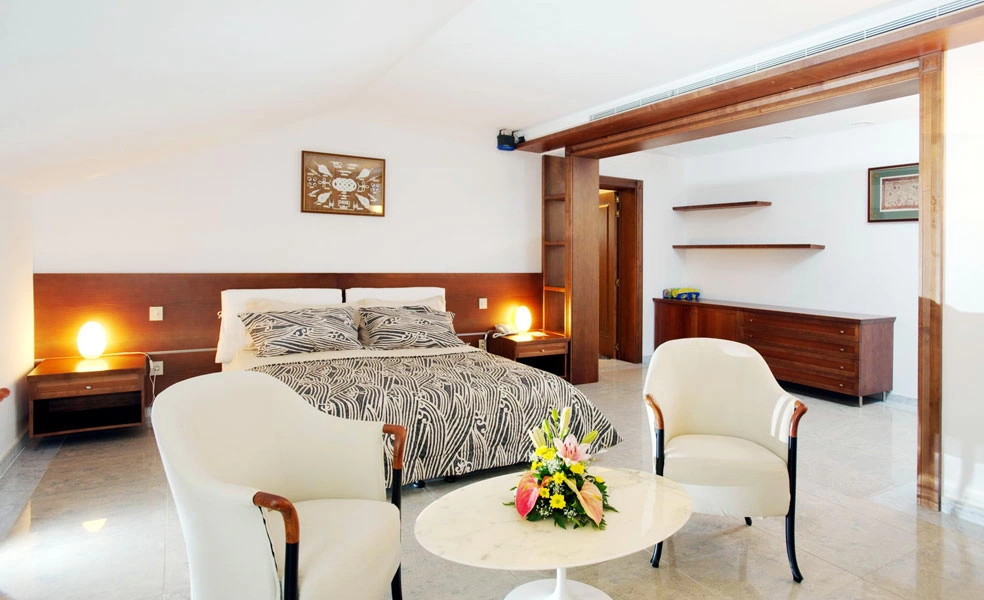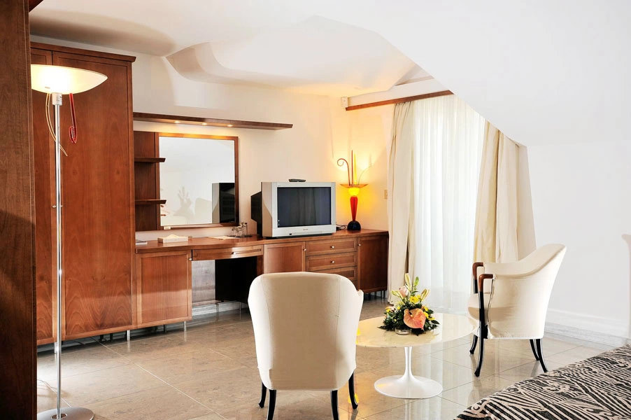 плазменная панель, видеодомофон, терраса с видом на море, некоторые из номеров оборудованы небольшой кухней, кондиционер, мини-бар, сейф, телефон