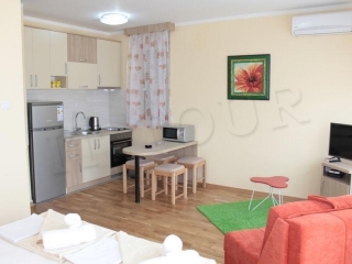 Кровать, кухня, ванная комната, холодильник, стиральная машина, фен, гладильные принадлежности, кондиционер, телевизор с кабельным телевидением (не во всех номерах), Wi-Fi, балкон.