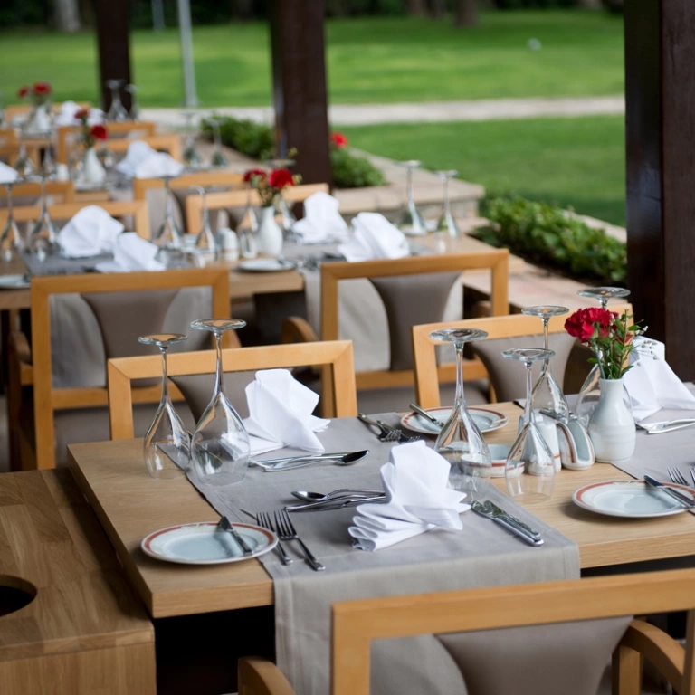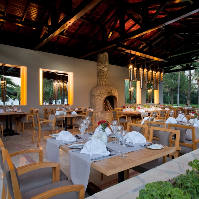 Цілодобова стійка реєстрації гостей, Wi-Fi безкоштовно (на території), 2 конференц-зали 150 і 61 м2 місткістю 100 і 50 чол, автобус в центр міста (платно), магазини, послуги фотографа (платно), пральня (платно), праска та прасувальна дошка (за запитом), 5 ресторанів (1 основний ресторан Hemera і 4 a la carte: турецький, рибний, середземноморський,