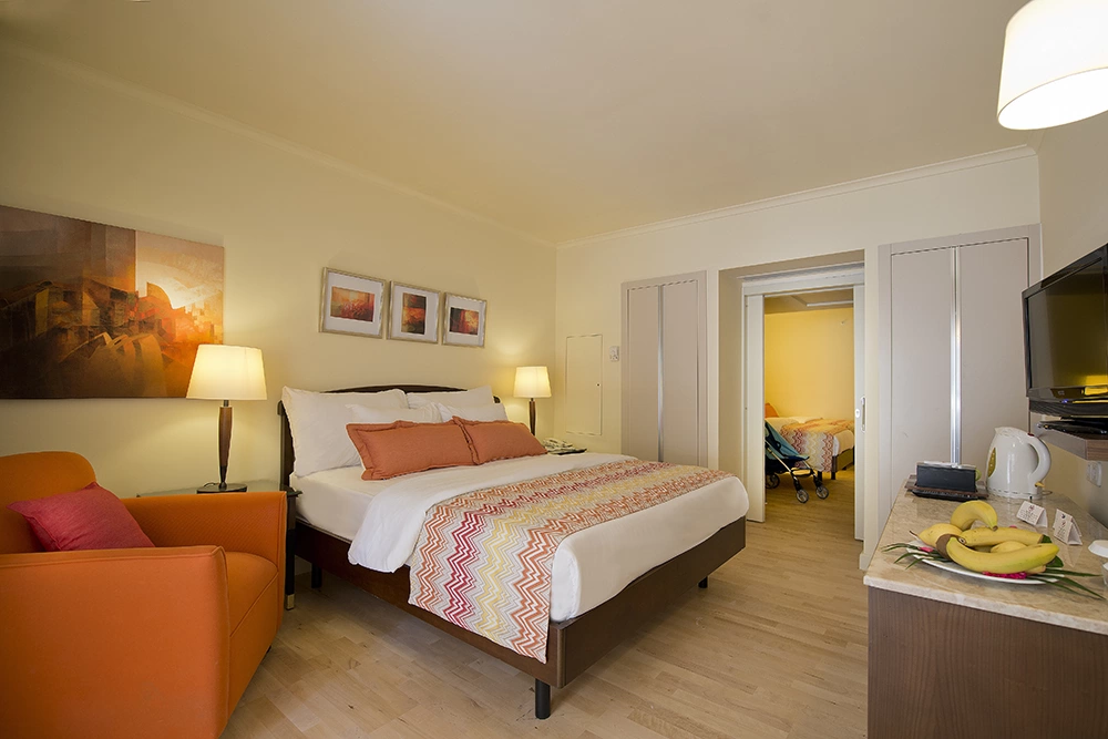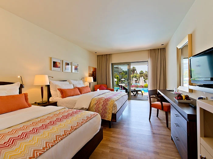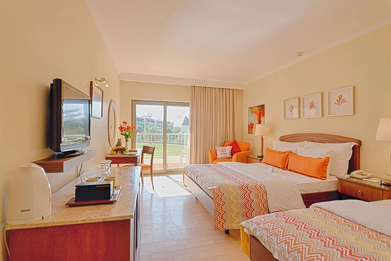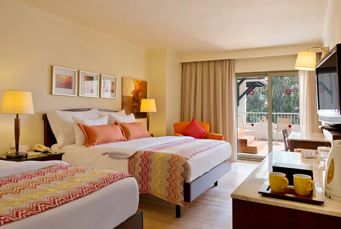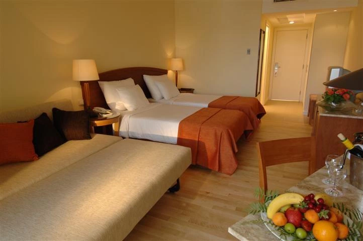 Центральный кондиционер (работает в определенные часы); индивидуальный кондиционер (в здании Deluxe), Wi-Fi (бесплатно), LCD-телевизор, спутниковое телевидение, сейф (бесплатно), телефон, утюг и гладильная доска (по запросу), мини-бар бесплатно (вода, прохладительные напитки, пиво — ежедневно), электрический чайник, набор для приготовления чая/кофе (бесплатно), ванная комната, фен, туалетные приналдежности, халат и тапочки, балкон, уборка номера: ежедневно, смена белья: 3 раза в неделю.
