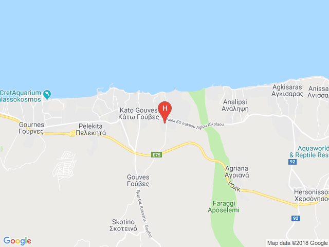 7 км от г. Херсониссос. 17 км от международного аэропорта «Никос Казандзакис» г. Ираклион.