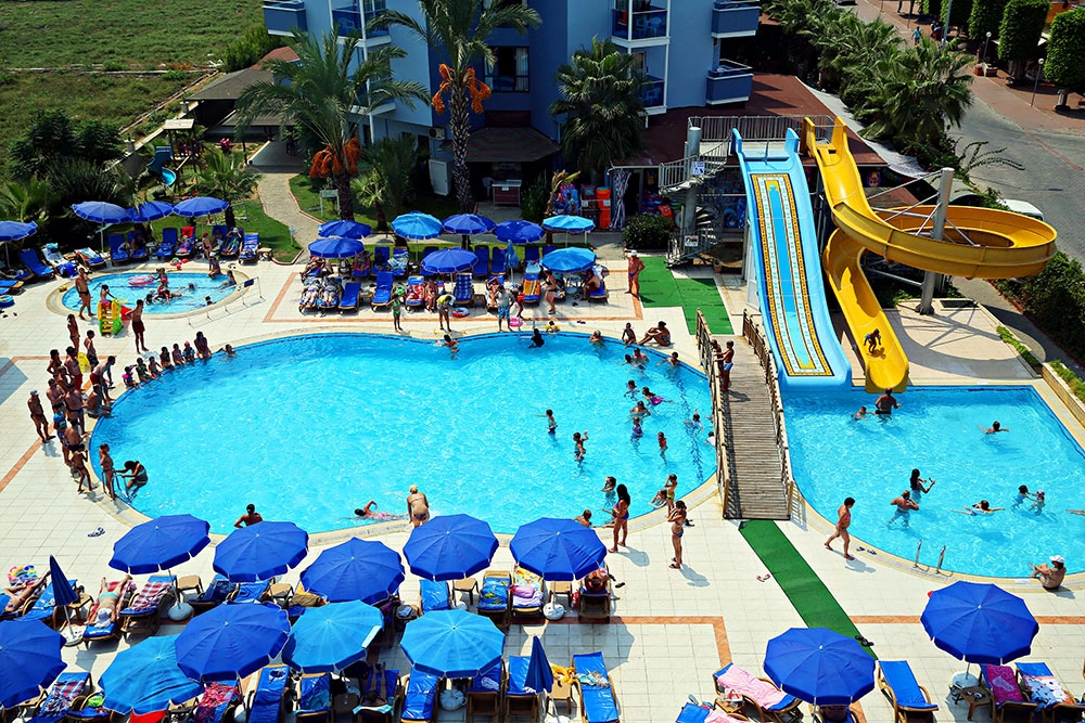 2 водні гірки (працюють за розкладом), водні види спорту на пляжі (платно), пляжний волейбол (безкоштовно), фітнес (безкоштовно), водне поло (безкоштовно), турецька лазня (безкоштовно), сауна, пілінг і масаж (платно), анімація (безкоштовно).