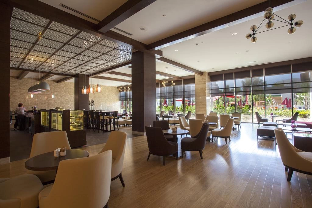 3 ресторани, 3 бари, 3 басейни (1 критий з підігрівом в зимовий час, 2 відкритих), магазини.