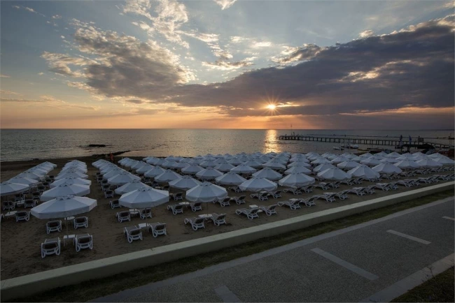 В 200 м від готелю. Між готелем і пляжем проходить променад. Є сервіс до пляжу. Протяжність пляжу – 150 м.