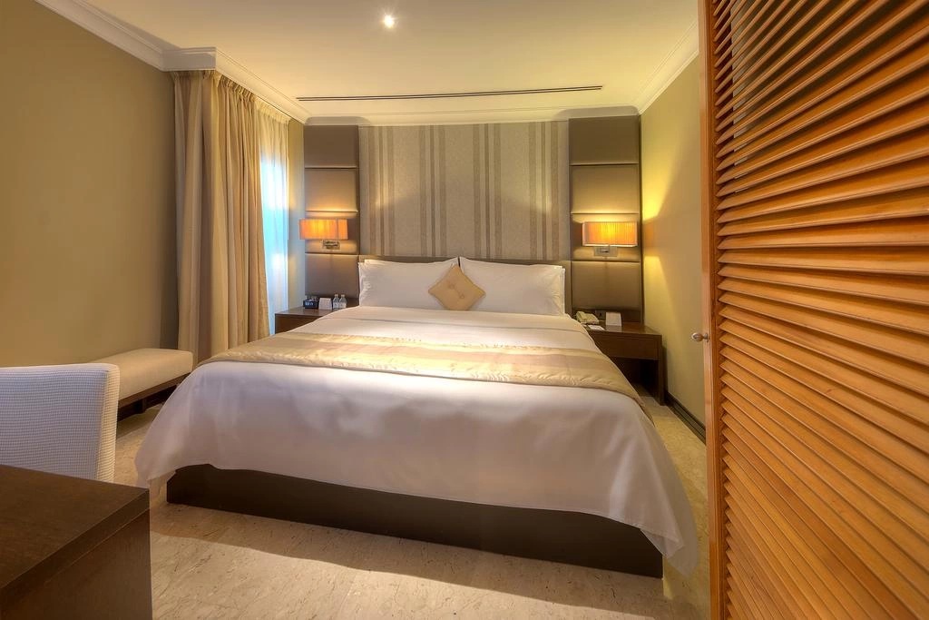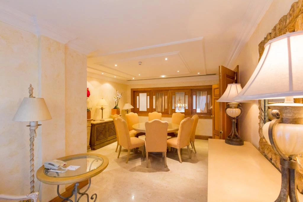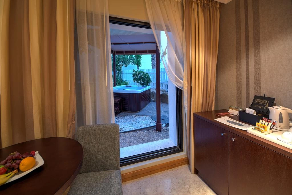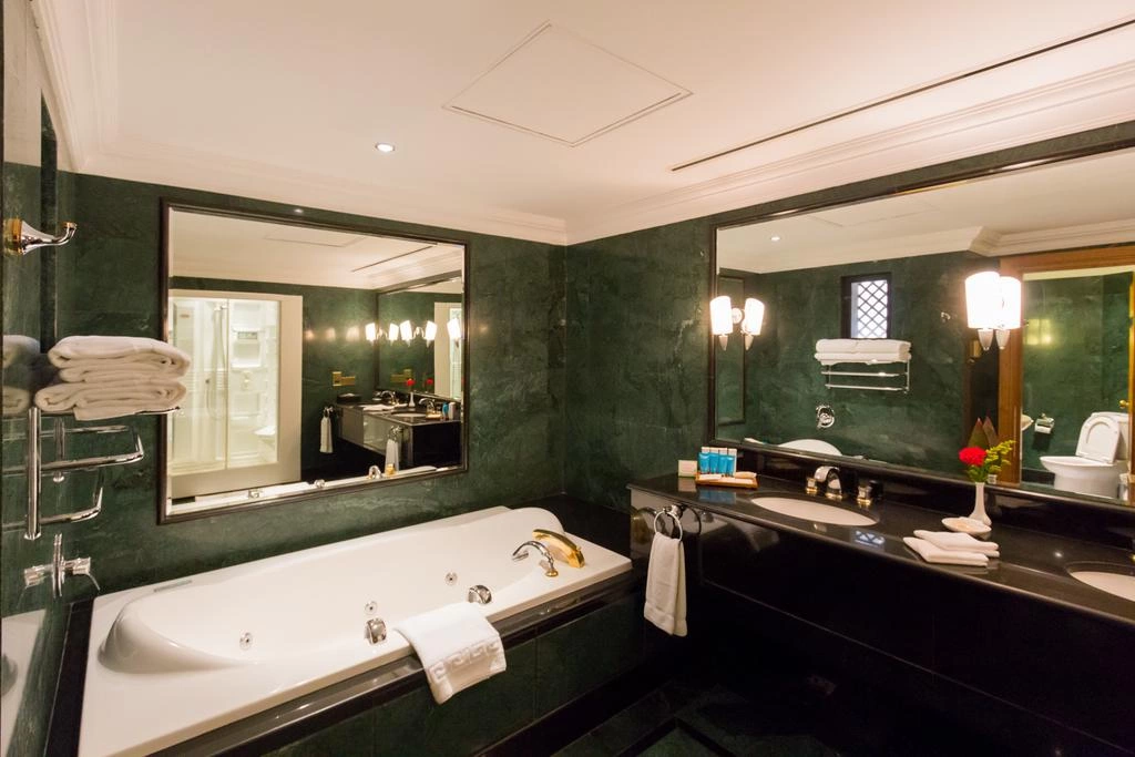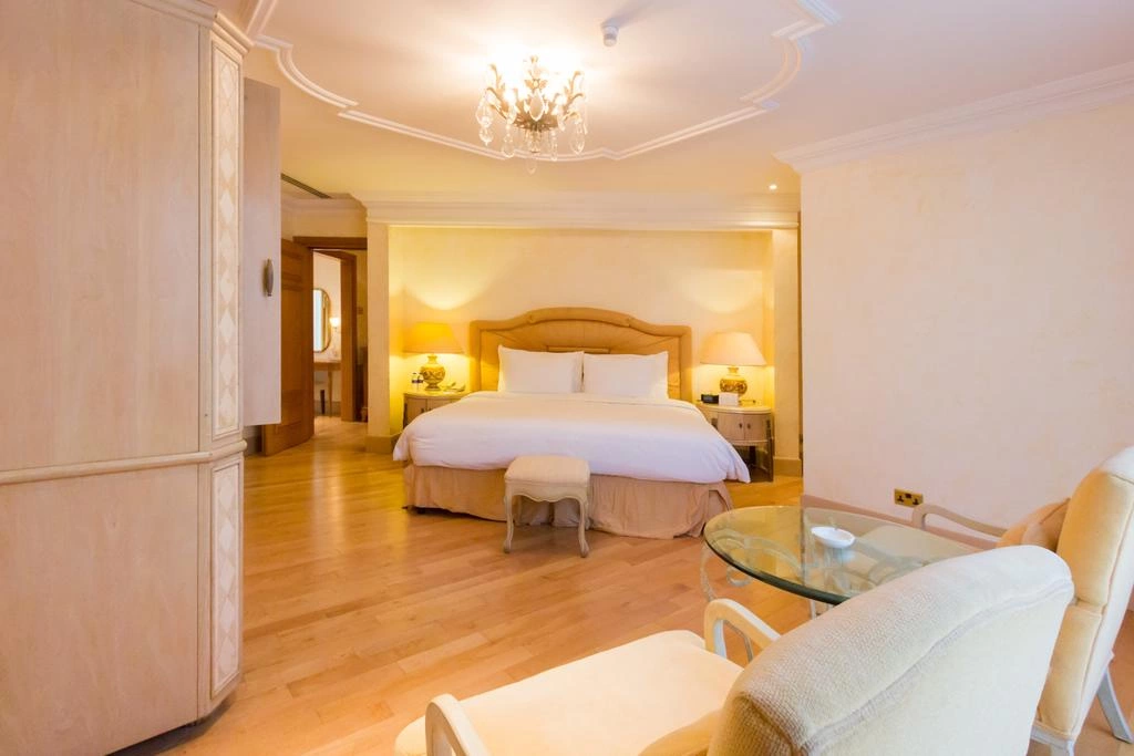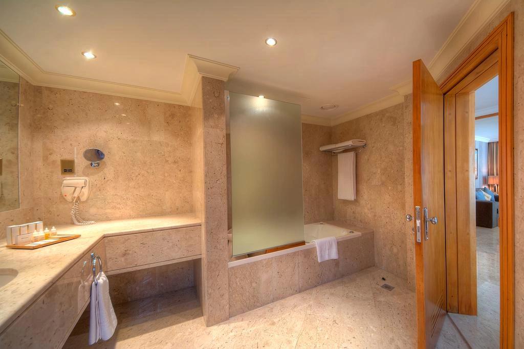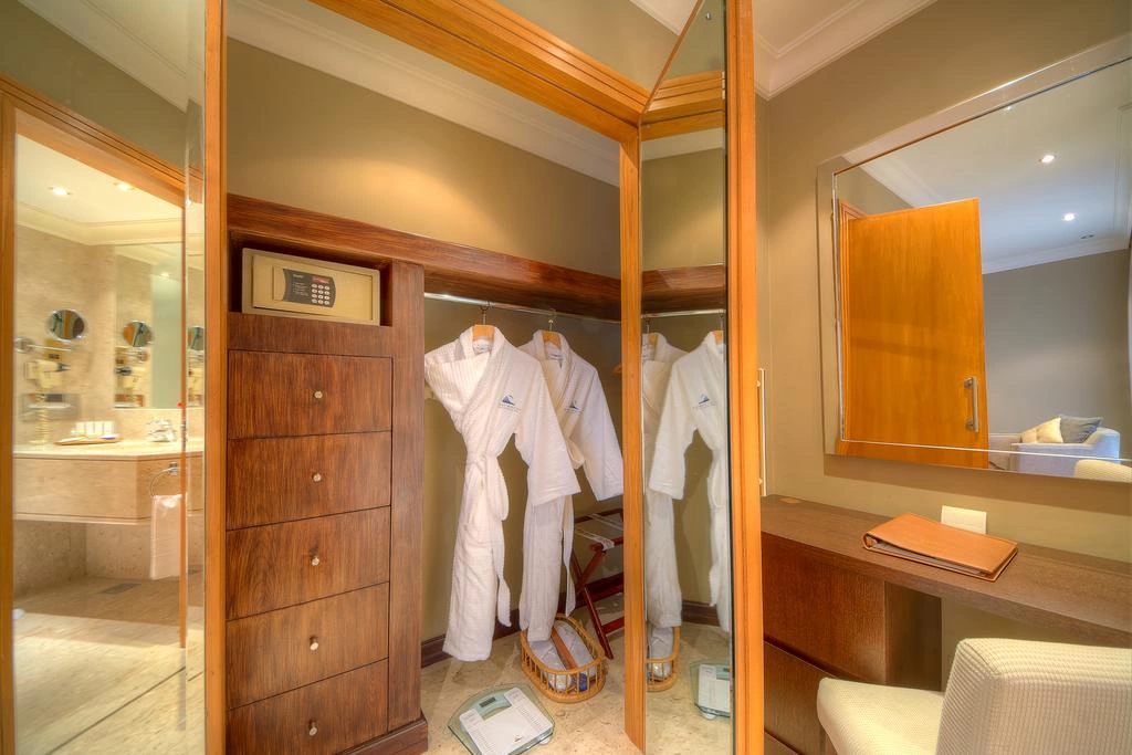 LCD-телевизор с плоским экраном, радио и телефон, мини-бар, принадлежности для чая/кофе, звукоизоляция, ванная комната, халат, тапочки, зеркало для макияжа, фен, кондиционер, сейф, минеральная вода, бесплатный Wi-fi, в некоторых люксах есть гидромассажная ванна