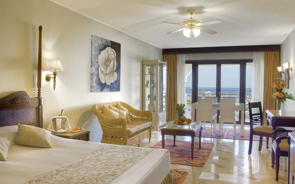 Ванная комната с душевой кабиной или ванной (шампунь, гель для душа и мыло-бесплатно), халаты и тапочки (бесплатно), фен, индивидуальный кондиционер (бесплатно), телевизор и спутниковое телевидение, высокоскоростной Wi-Fi интернет (бесплатно/два устройства на комнату), сейф (бесплатно), телефон (платно), мини-бар (бесплатно, ежедневное пополнение местными напитками), набор для приготовления чая и кофе (бесплатно), утюг и гладильная доска (по запросу, бесплатно), балкон или терраса. Уборка номера: ежедневно, смена белья и полотенец: ежедневно, room service (платно).