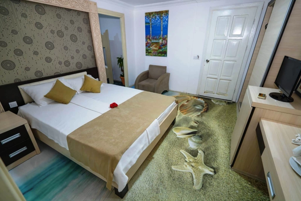 Индивидуальный кондиционер, спутниковое ТВ, мини-бар (только вода, при заезде), прямой телефон, душ, фен, сейф (платно), балкон. Уборка номера: ежедневно, смена белья: 3 раза в неделю, смена полотенец: ежедневно, room service (платно)