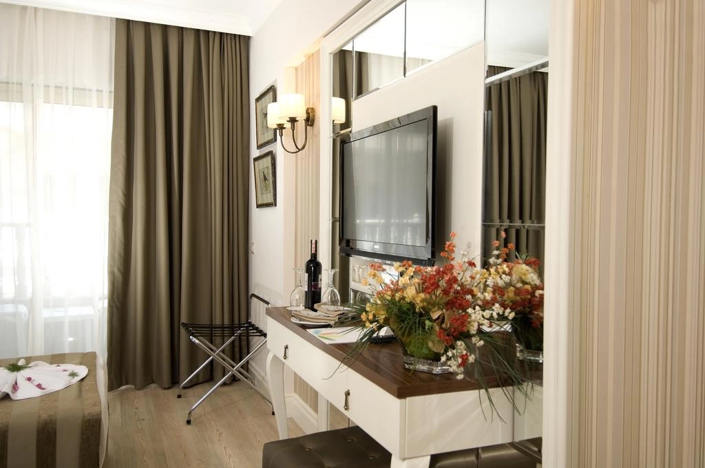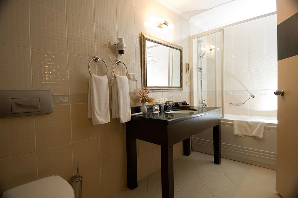 Кондиционер, спутниковое ТВ с российским каналом, мини-бар, прямой телефон, собственная ванная комната, ванна или душ, фен, сейф, балкон.