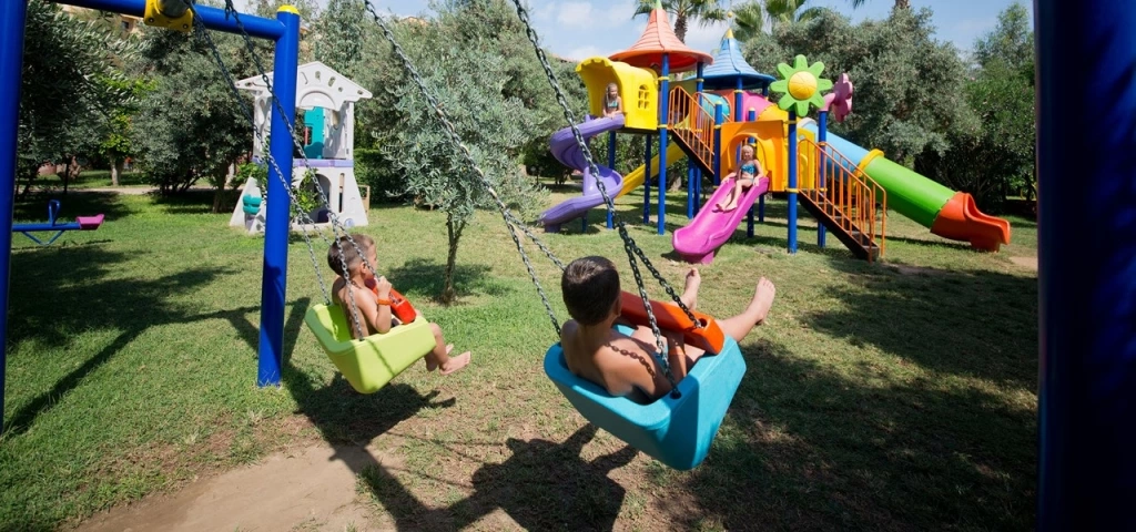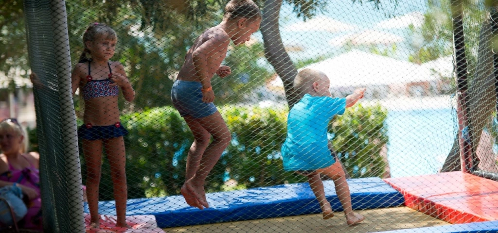 2 відкритих басейну площею 15 м2 та 12 м2, глибиною 0,40 м, 2 водні гірки, дитячий міні-клуб (4-12 років), дитяча ігрова зона, міні-диско, анімація для дітей, дитячі коляски (платно).
