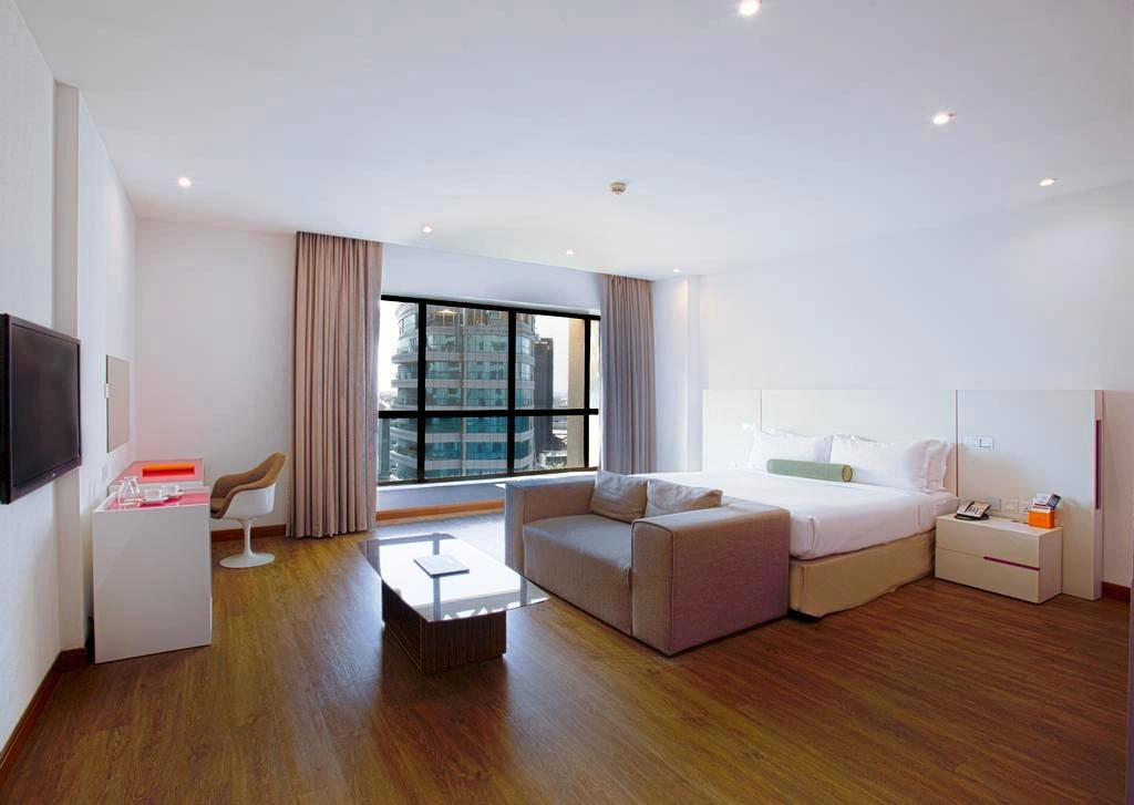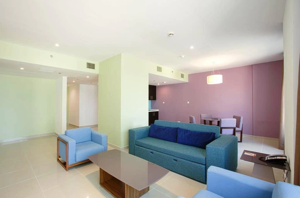 Кондиционер (бесплатно), ЖК-телевизор, спутниковое ТВ, DVD-плеер, Wi-Fi (бесплатно), сейф (бесплатно), мини-холодильник, бутылка минеральной воды при заезде, набор для приготовления чая и кофе (бесплатно), утюг и гладильная доска (по запросу, бесплатно), ванная комната, фен (бесплатно), туалетно-косметические принадлежности. Уборка номера: ежедневно, смена белья: по запросу, room service (платно).