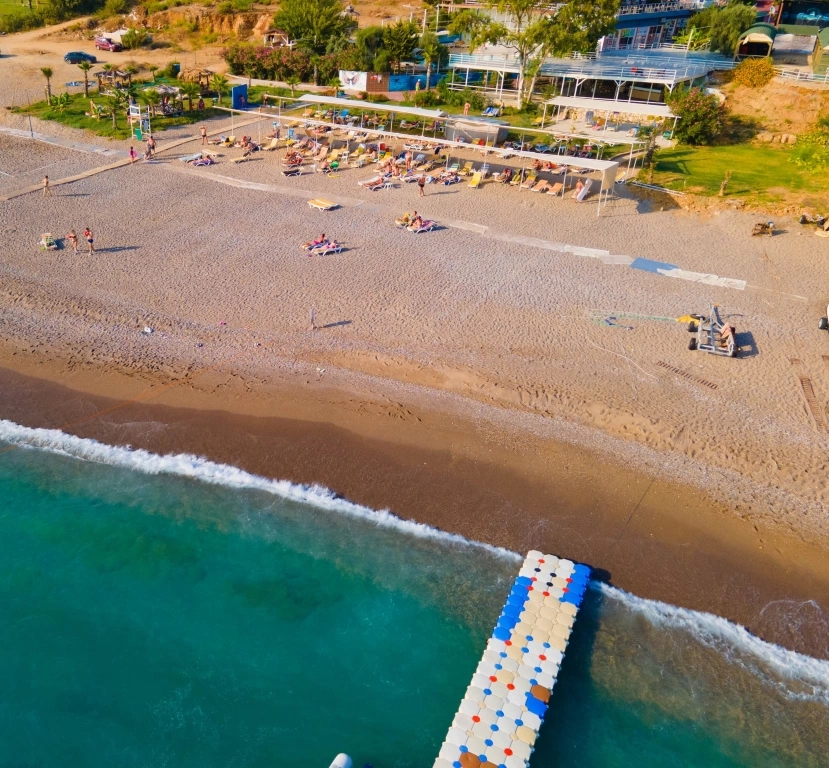 Пляж в 50 метрах від готелю. Вхід в море: піщаний. Пляжні рушники — платно. Бар на пляжі: 10:00-18:00 (безкоштовно).