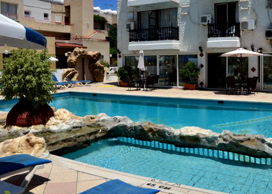 Відкритий басейн з поступовим збільшенням глибини, сад, тераса для засмаги, ресторан на 50 місць, бар біля басейну, лобі-бар, цілодобова стійка реєстрації, камера зберігання багажу.
