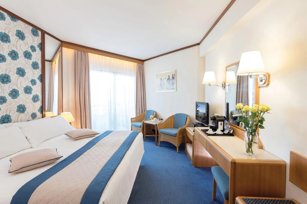 Собственная ванная комната, ванна или душ, халаты, тапочки, фен, центральный кондиционер (май-октябрь), спутниковое ТВ, бесплатный Wi-Fi, сейф (бесплатно), телефон, мини-бар (платно), чайник, косметическое зеркало, мини-холодильник, утюг и гладильная доска, набор для приготовления чая/кофе.