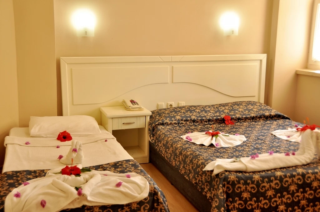 В номерах представлено: индивидуальный кондиционер, спутниковое ТВ с российским каналом, душ, фен, тапочки, сейф (платно), балкон.