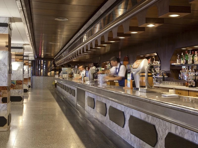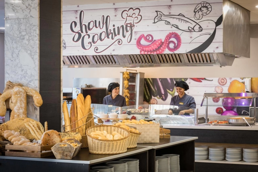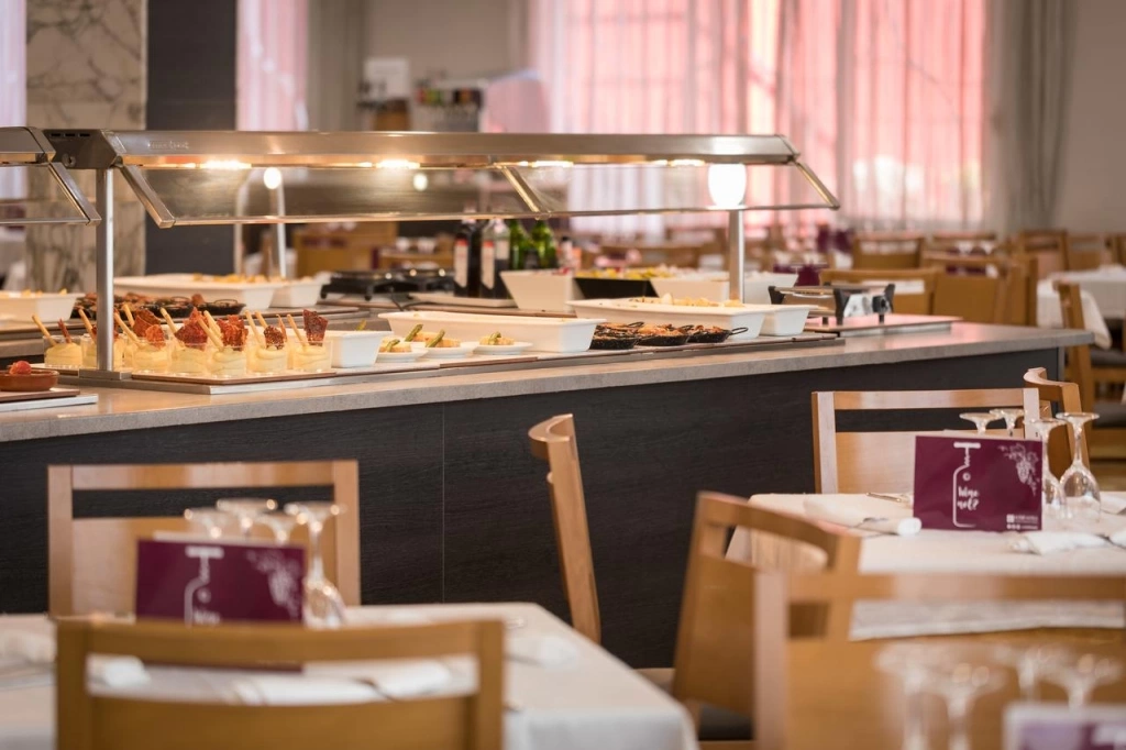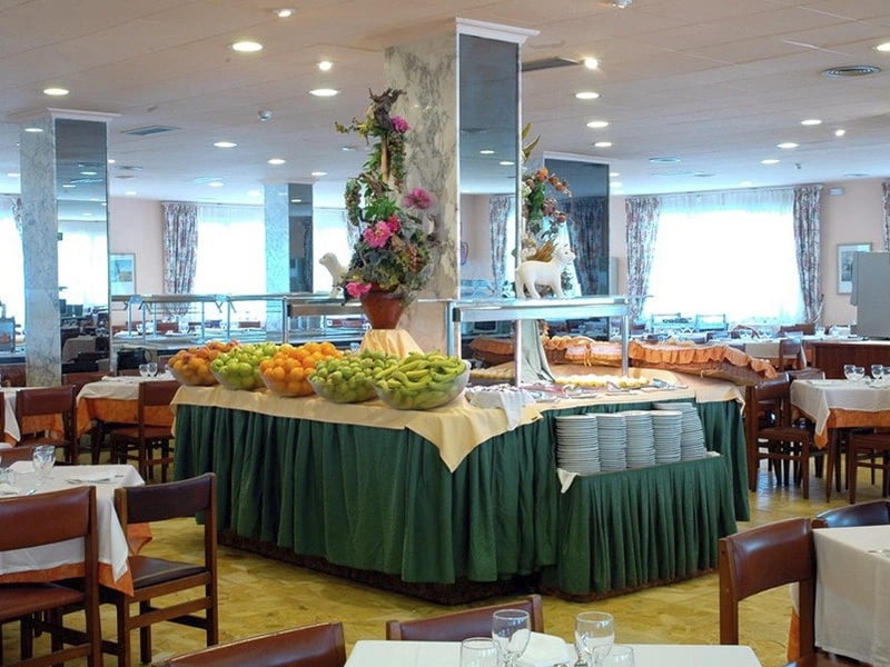 У ресторані подають страви каталонської, іспанської та інтернаціональної кухні у форматі «шведський стіл». На території також працює бар. Для гостей влаштовують розважальні вечірні програми з живою музикою і кабаре-шоу.