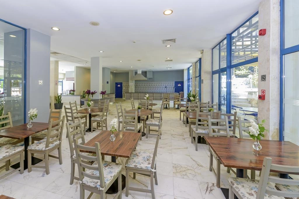 Гості можуть відвідати головний ресторан з розкішною терасою або покуштувати страви на грилю в ресторані-барбекю.