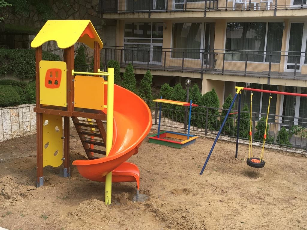 Для юних гостей на території готелю облаштовано дитячий басейн та дитячий майданчик.