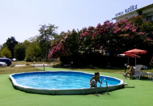 Готель розташований в центрі курорту і приймає гостей з травня по жовтень, реконструйований у 2011 році. Являє собою 3-х поверховий будинок. Затишний, економічний готель знаходиться на 2-ої берегової лінії, в декількох кроках від пляжу. Ідеальний варіант для спокійного бюджетного відпочинку.