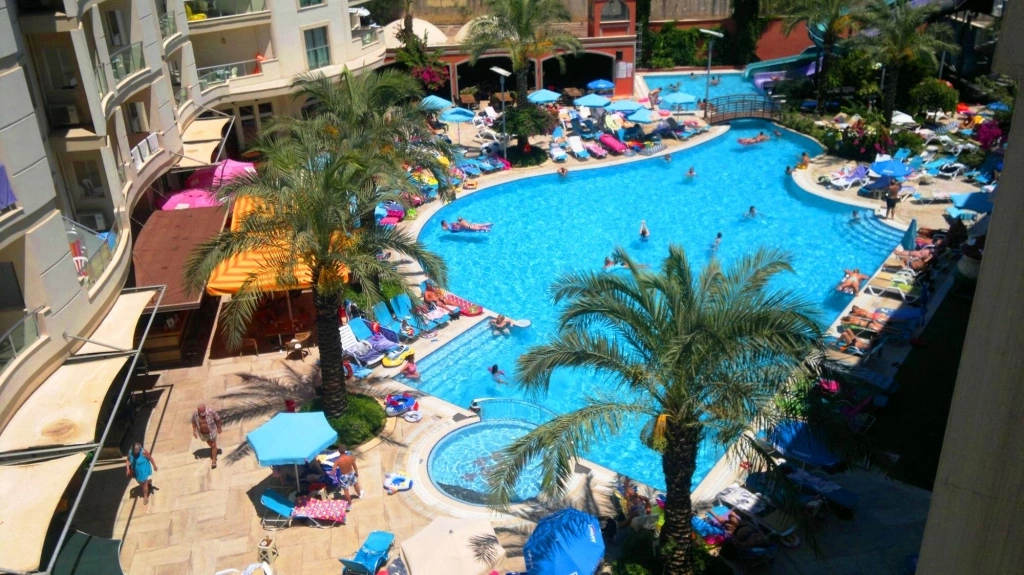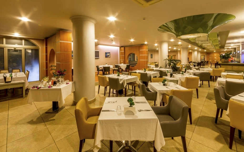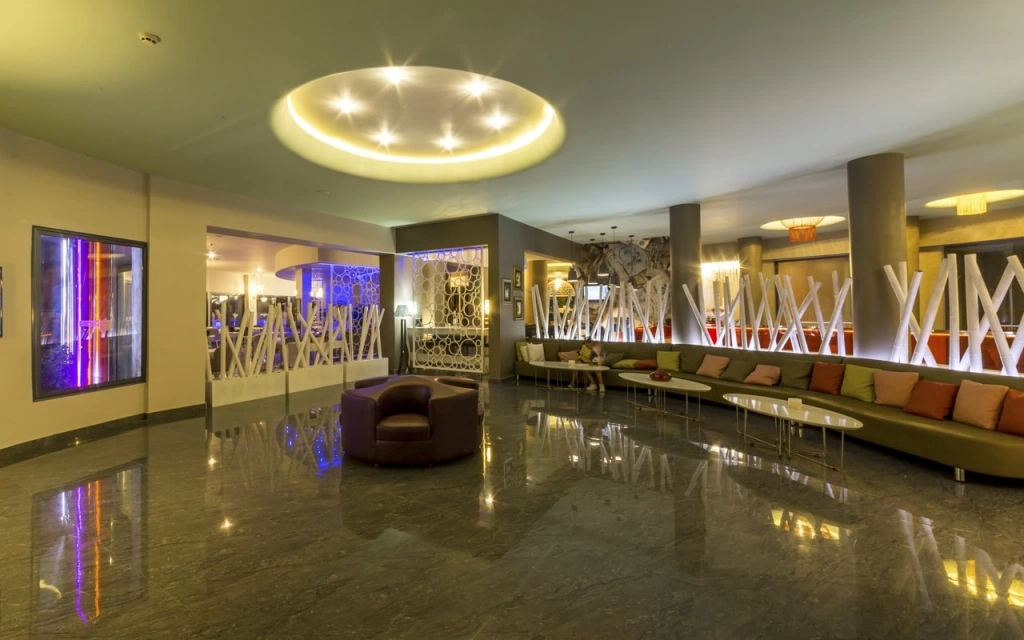 Цілодобова стійка реєстрації гостей, факс/ксерокопіювання (платно), послуги по прасуванню одягу (платно), міні-маркет, 3 ресторани (1 основний ресторан, 2 ресторани A la Carte — італійський, рибний по резервації, платно), 4 бари, ТБ-зал, інтернет-кафе (платно), Wi-Fi в лобі (безкоштовно), послуги фотографа, 1 відкритий басейн 640 м2, 3 гірки, 1 рел