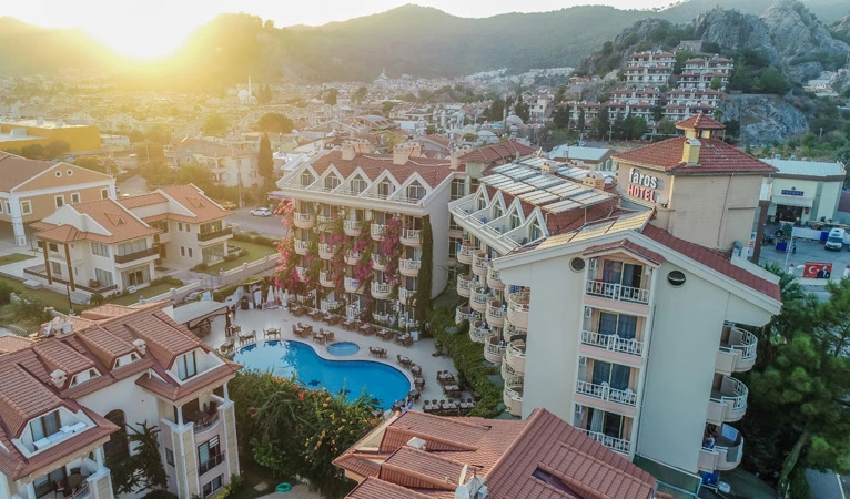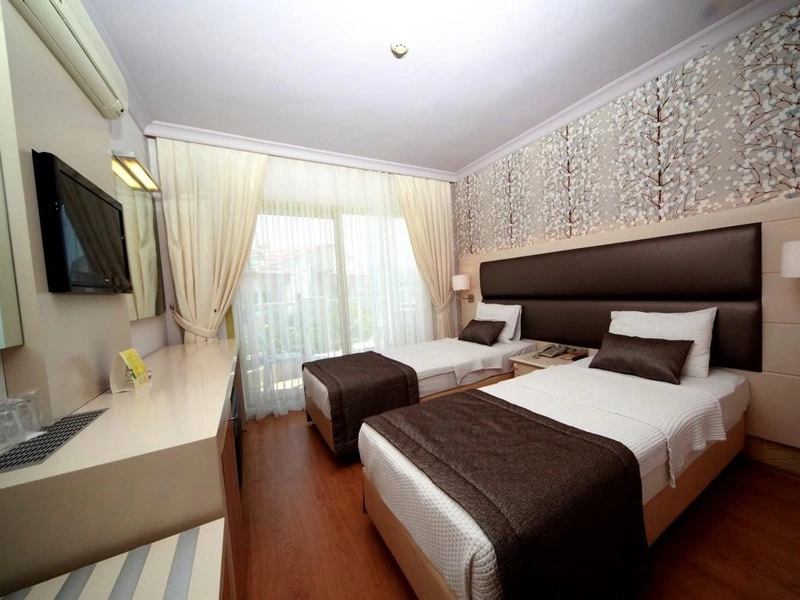 В 90 км от аэропорта г. Даламан, в 2 км от центра г. Мармарис, 1,5 км от собственного пляжа.