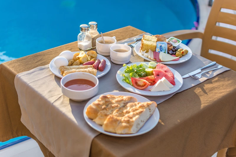 Wi-Fi в лобі (безкоштовно), інтернет-куточок (платно), 3 бари — Lobby Bar (10:00-24:00), Pool Bar (10:00-01:30), Snack Bar (12:00-17: 00), 2 ресторани: критий ресторан (максимально вміщає до 100 чоловік), відкритий ресторан (максимально вміщає до 200 чоловік), 1 відкритий басейн 148 м2, біля басейну парасольки, шезлонги, матраци (безкоштовно), рушн