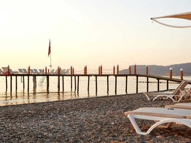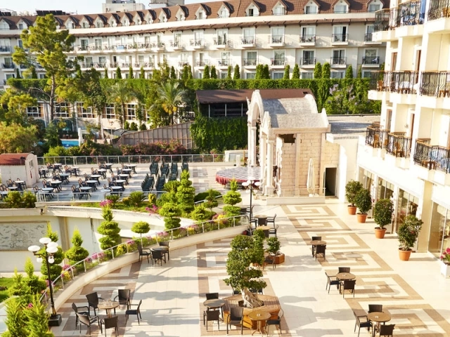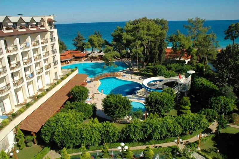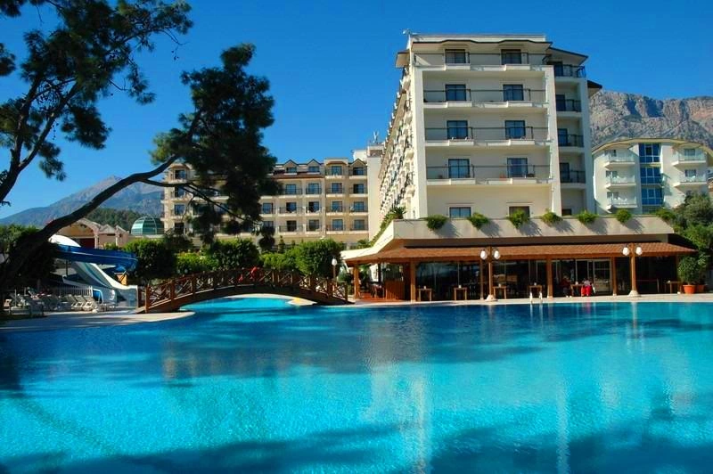 В 45 км от аэропорта г. Анталья, 800 м от г. Кемер.